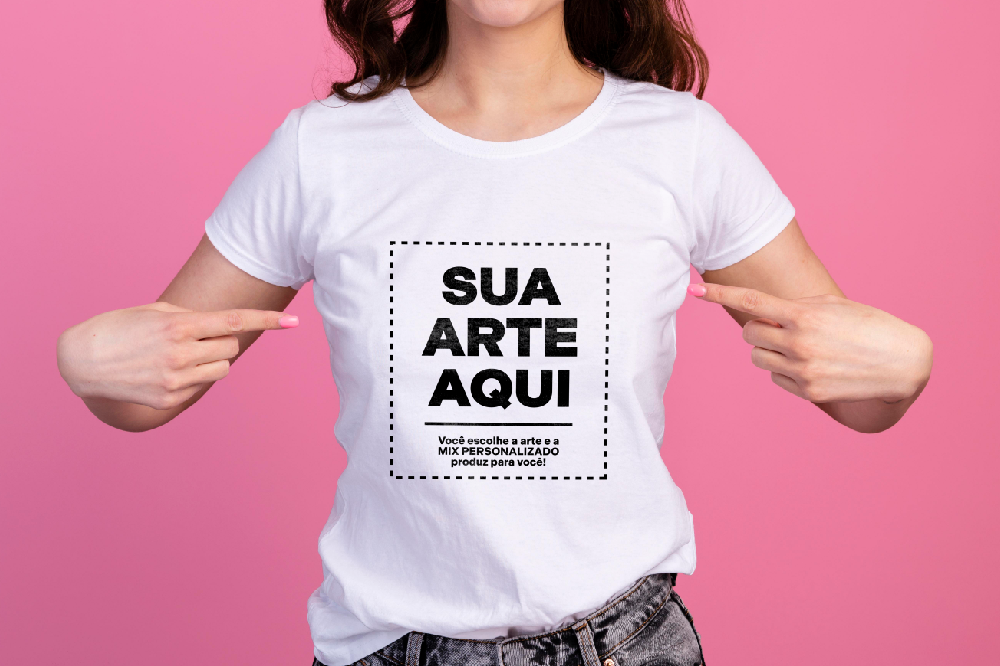 Camiseta de alta qualidade, com gola em ribana e acabamento de cobre gola (tape).